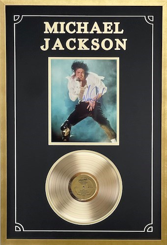 Michael Jackson (d. 6/25/2009) – “Thriller” – Extremely Limited pose! – Features 11×14 Photo Autographed by Michael Jackson (d. 6/26/2009) plus -a FULL-SIZE 12″ Gold Record Album, Custom-Designed Matting & Museum-Quality Gold Frame