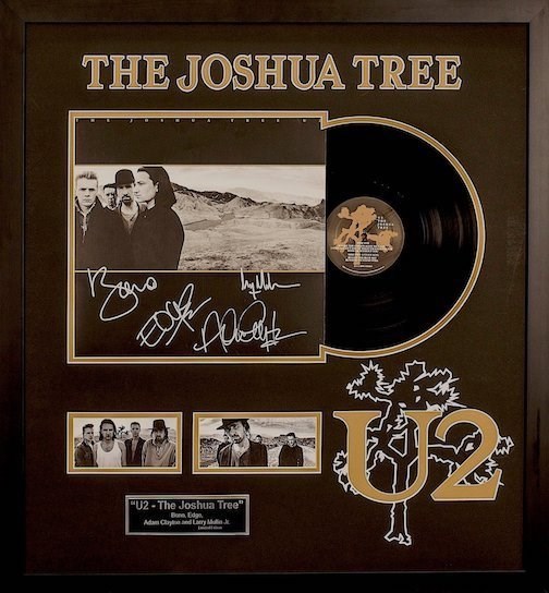 U2 – “The Joshua Tree” – ***Extremely Rare Item*** Limited Edition to Commemorate Their Best Selling “The Joshua Tree” Record Album Custom Framed With U2 and Joshua Tree Official Logo Triple Laser-Cut In The Matting Of The Frame – Museum Quality – Bono, Edge, Adam Clayton and Larry Mullin Jr.