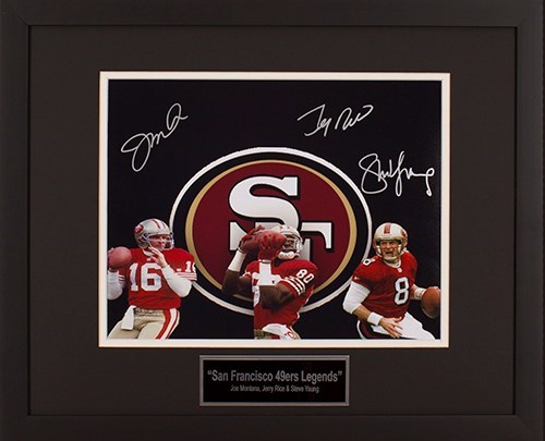 San Francisco 49ers Legends – Joe Montana, Jerry Rice & Steve Young/ Autographed custom frame 11x14