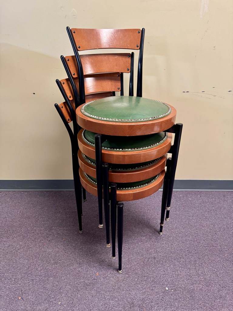 31" tall seat back, 19" tall seat, 17" round seat Used. Chair condition varies.